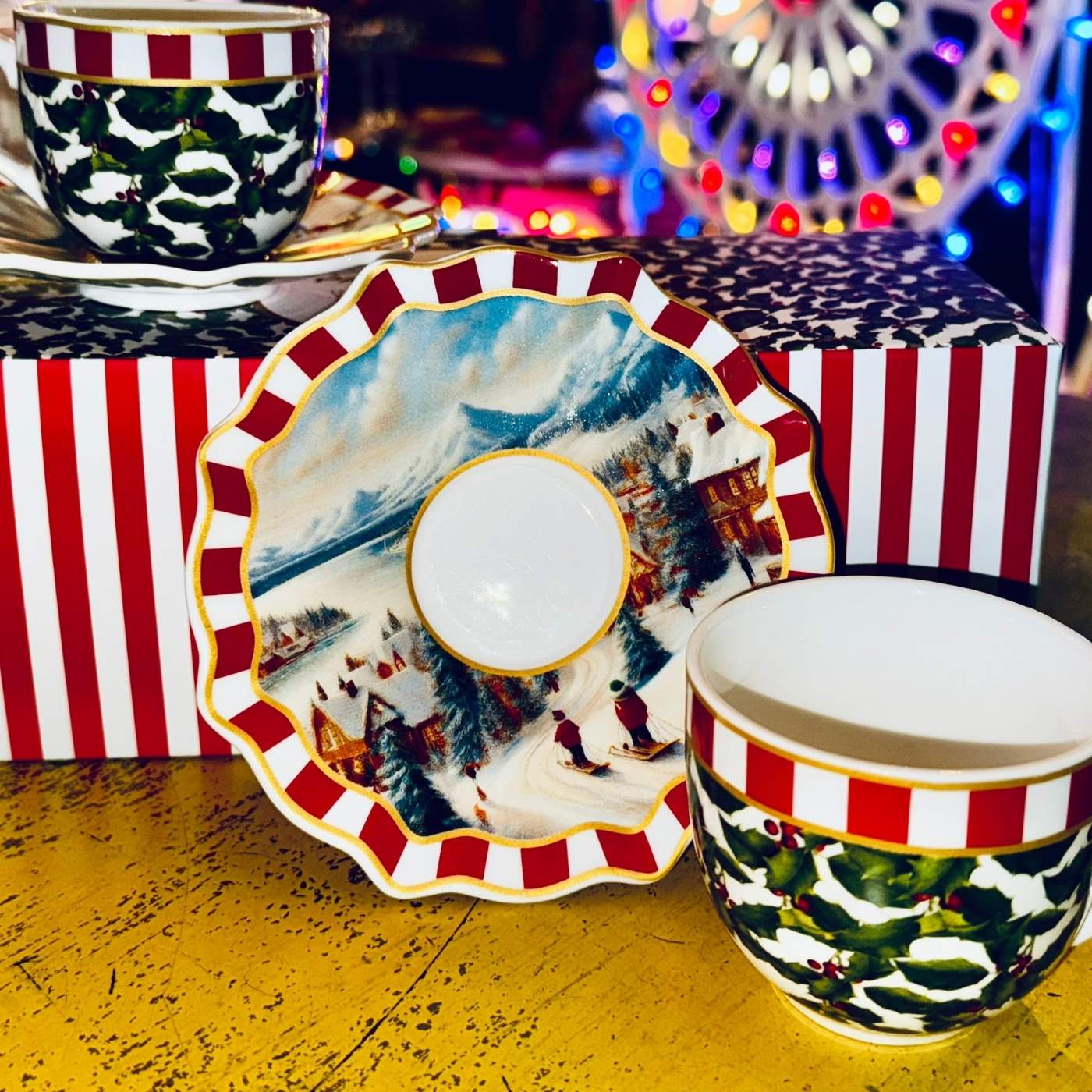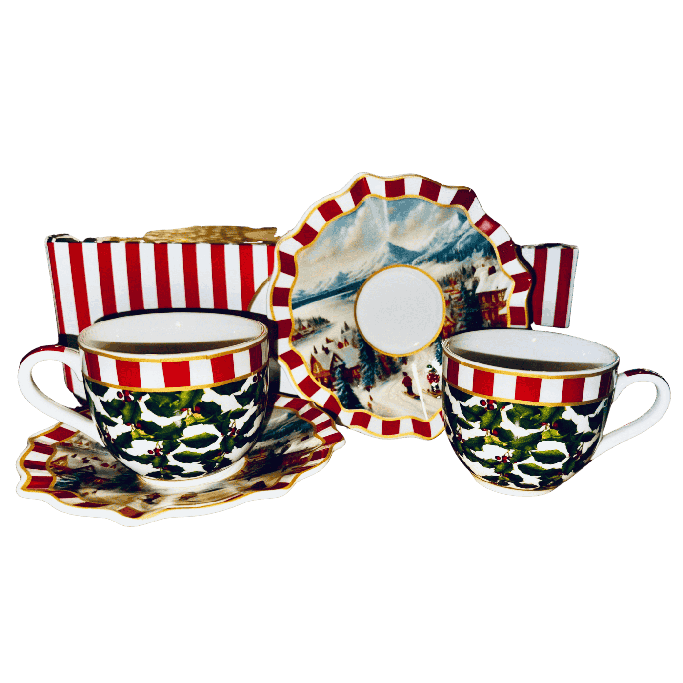 Set da 2 Tazzine con Sottotazza – Disegno Natalizio Agrifoglio