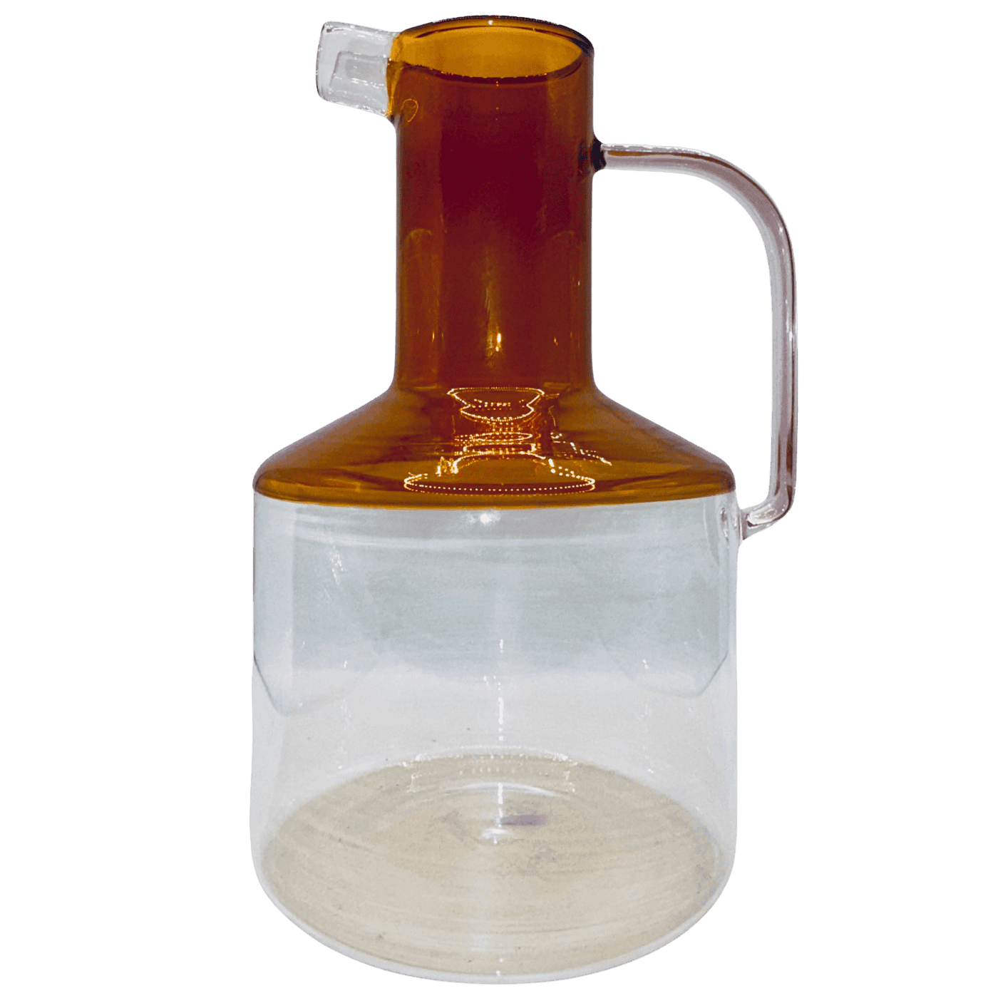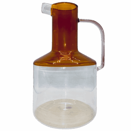 Raffinata caraffa in vetro borosilicato, caratterizzata da un elegante design tricolore che unisce tonalità ambra e un delicato manico rosa. La forma e la trasparenza del materiale la rendono un elemento distintivo per una tavola apparecchiata con gusto e raffinatezza. Perfetta per servire acqua, succhi o bevande rinfrescanti, unisce funzionalità ed estetica contemporanea per aggiungere un tocco di stile a ogni occasione.