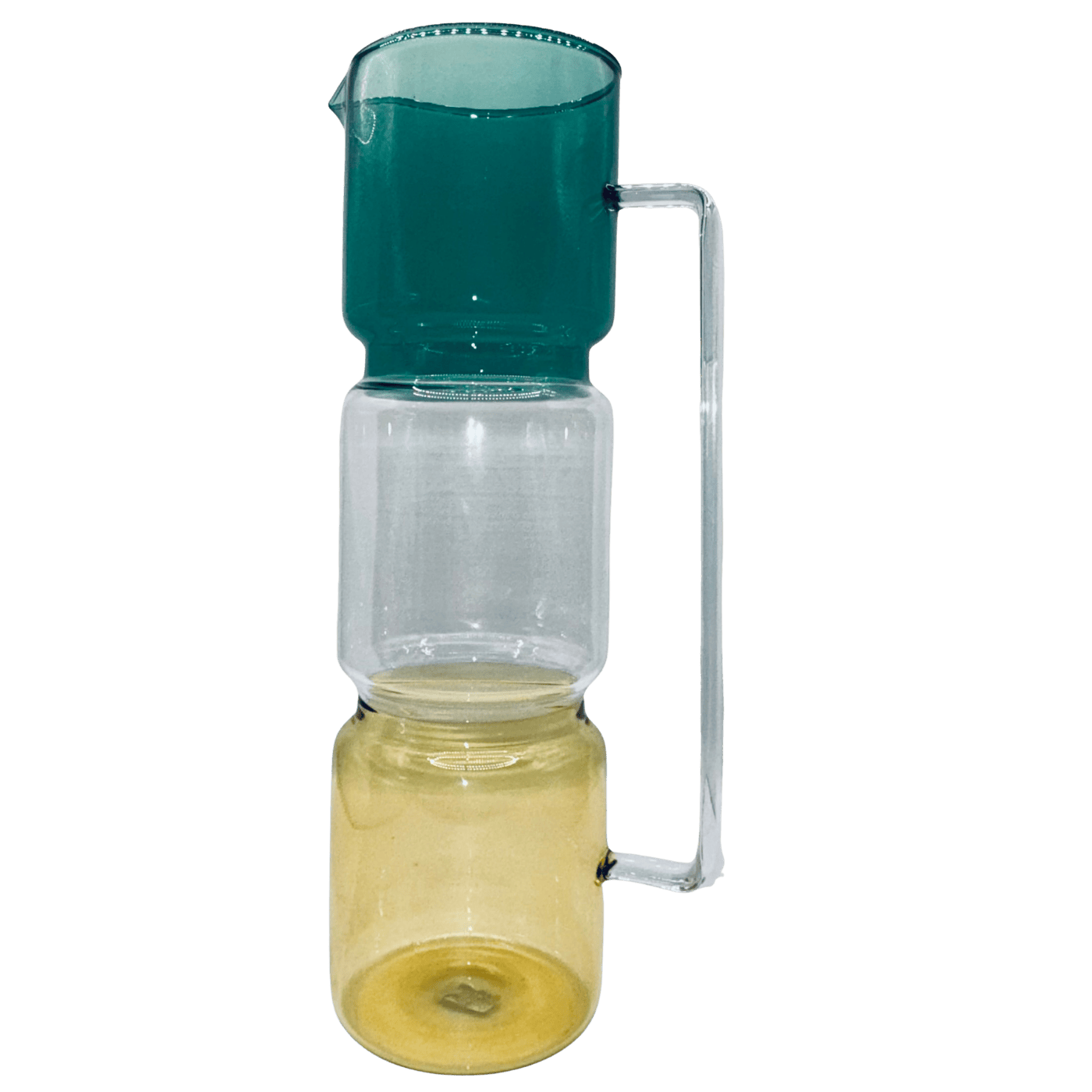 Raffinata caraffa in vetro borosilicato dal design tricolore, con sfumature di verde, giallo e trasparente. La combinazione di colori delicati e la linea essenziale la rendono un accessorio elegante e contemporaneo, perfetto per servire acqua, succhi o bevande rinfrescanti. Ideale per una tavola apparecchiata con gusto e raffinatezza, aggiunge un tocco di stile ad ogni occasione.