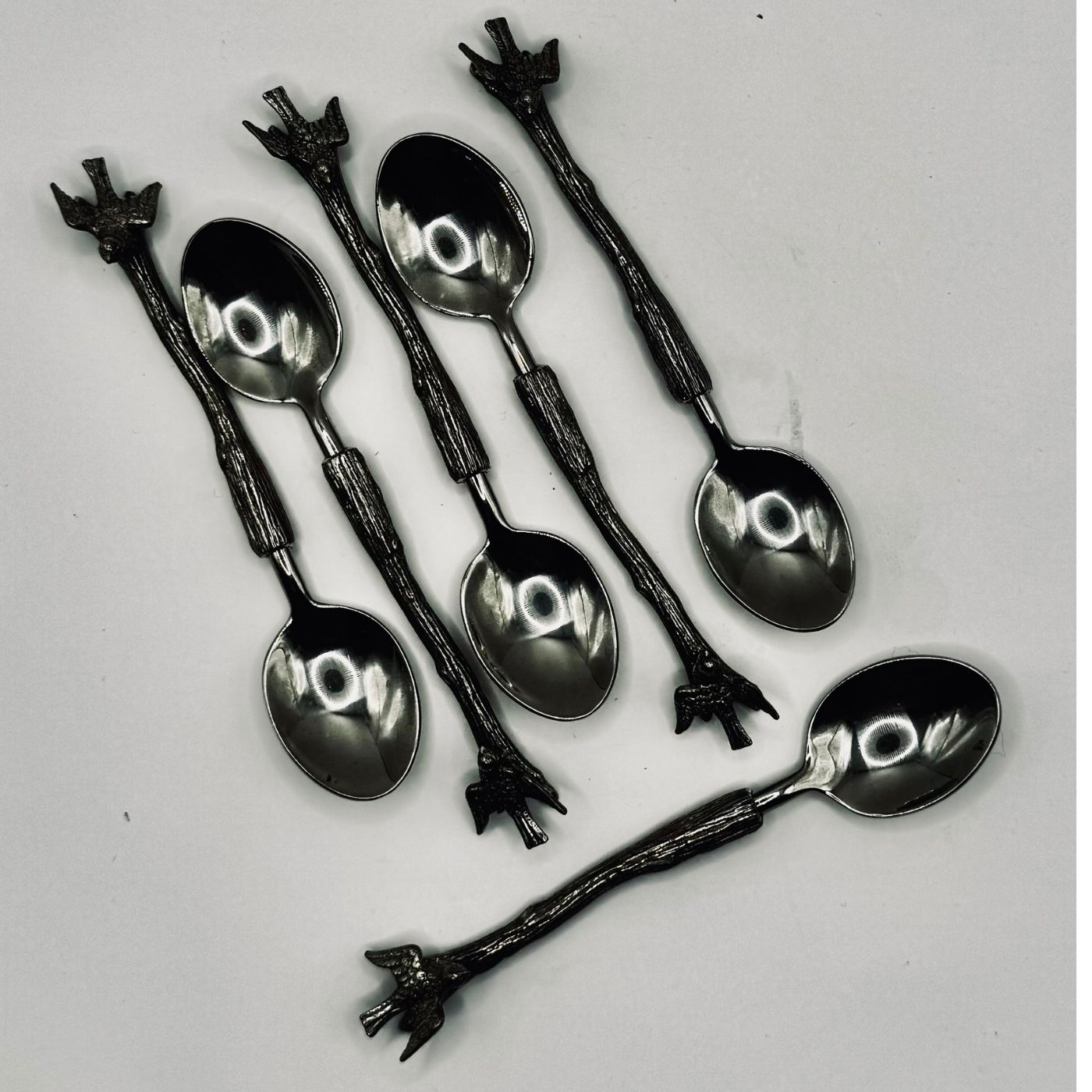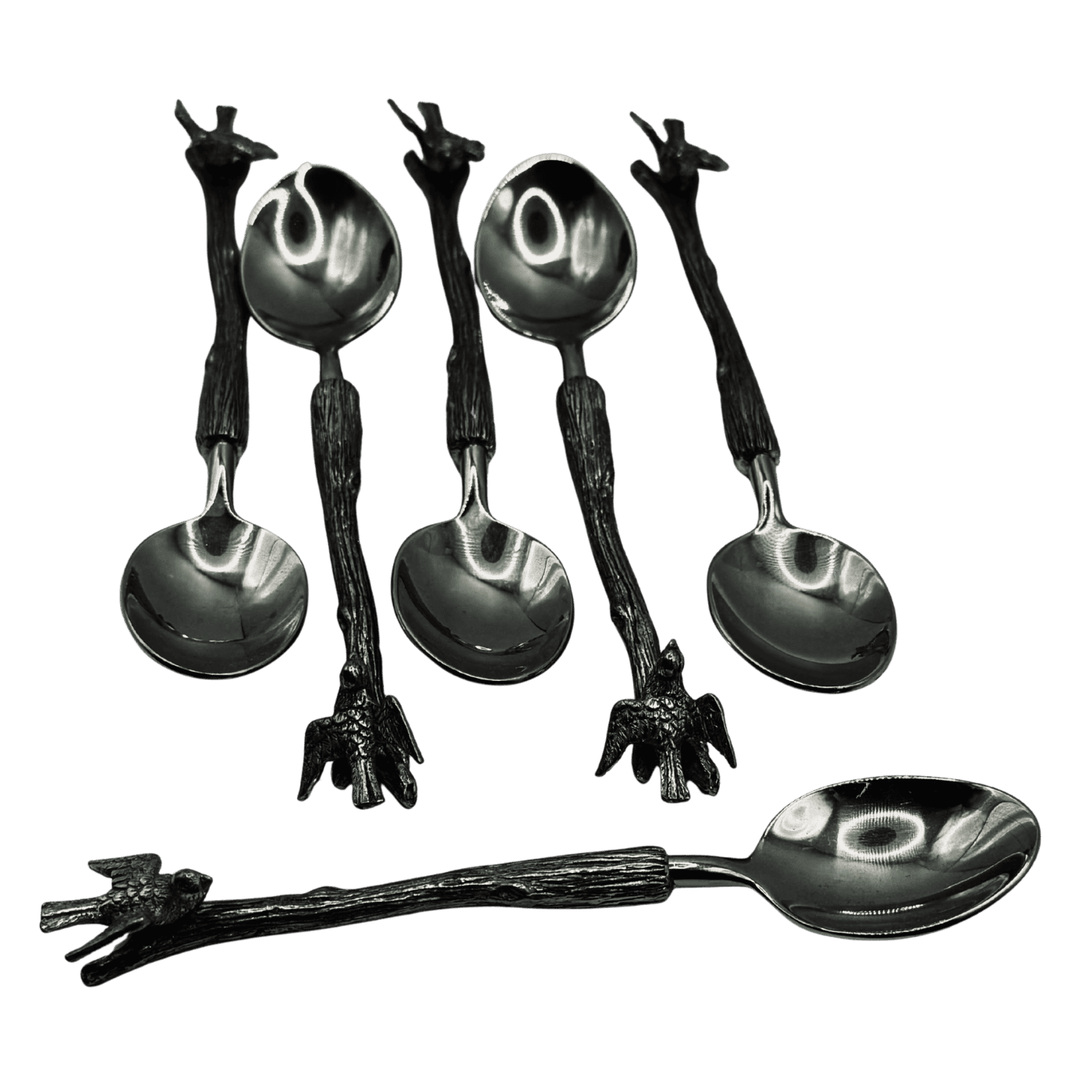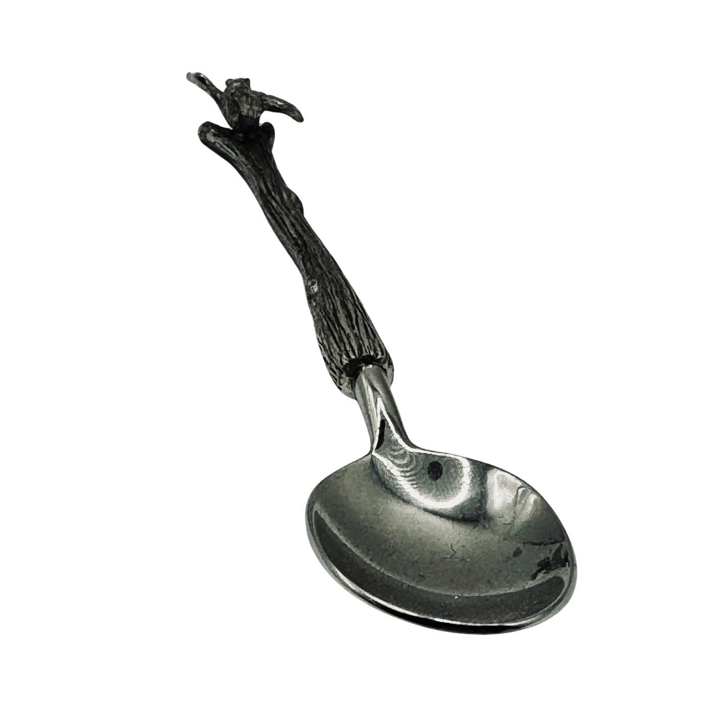 Cucchiaino da tè con uccellino, realizzato in acciaio inox. Un accessorio decorativo da tavola raffinato e giocoso, ideale per collezionisti o per aggiungere un tocco poetico alla pausa tè.