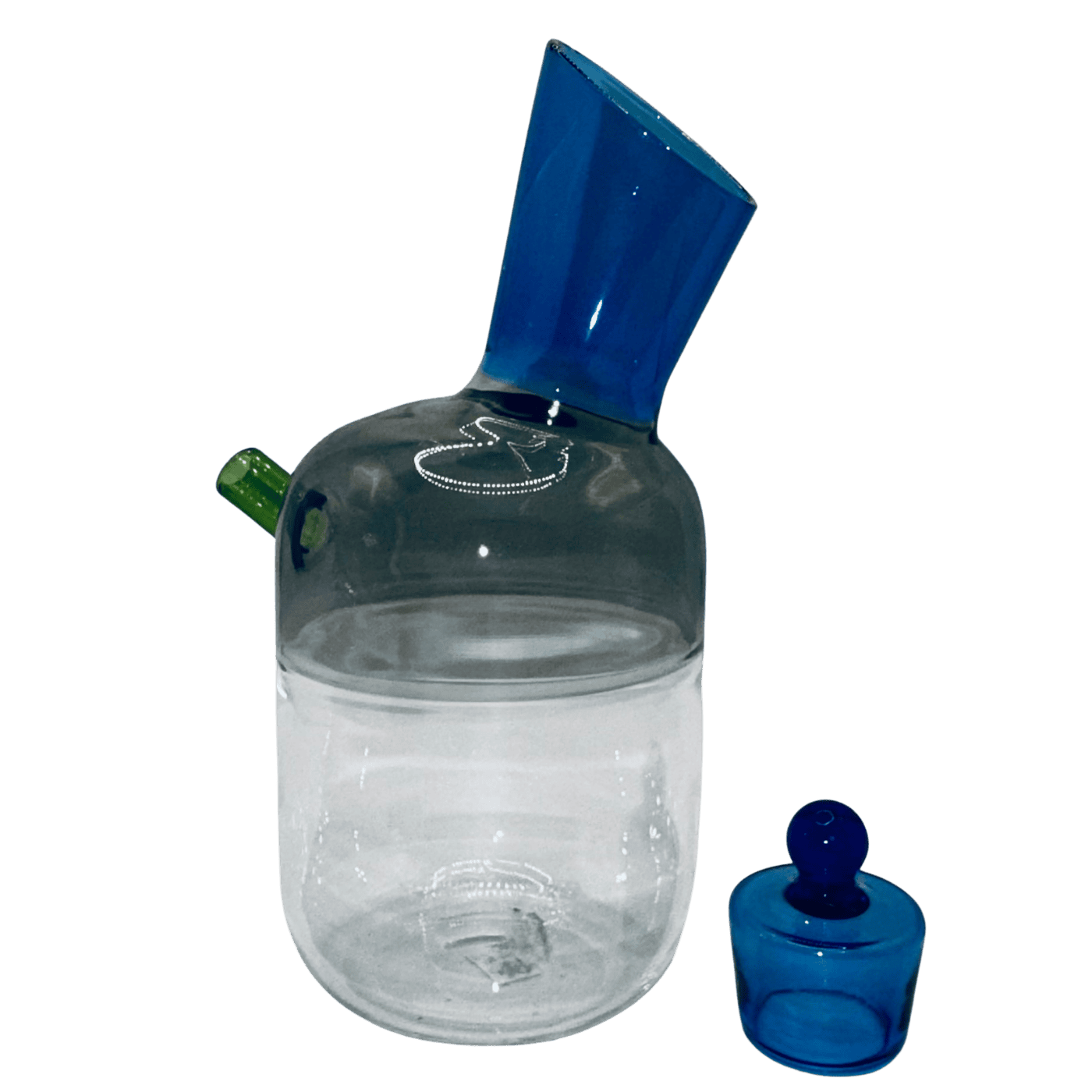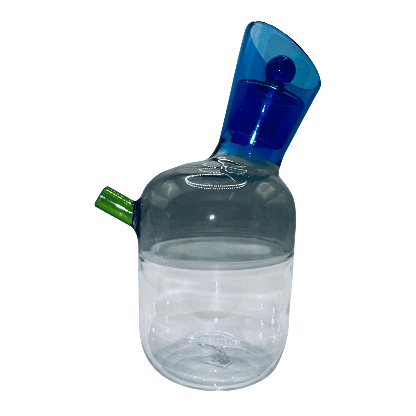 Elegante oliera/acetiera in vetro borosilicato dal raffinato design tricolore, con tonalità ambra, blu e rosa. Realizzata con materiali di alta qualità, unisce resistenza e leggerezza, diventando un elemento distintivo per la tavola. Perfetta per servire olio o aceto con stile, dona un tocco di gusto e raffinatezza a ogni mise en place.
