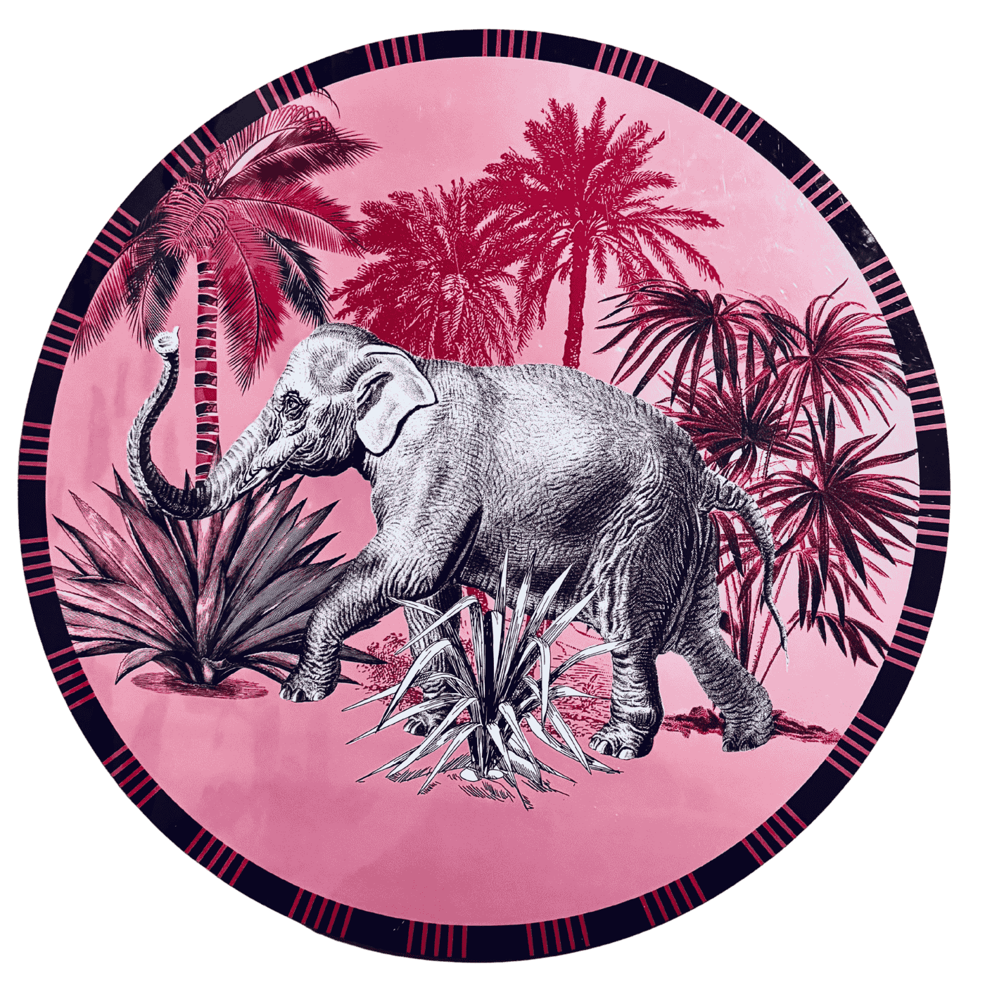 Quattro sottopiatti eleganti in plexiglass stampato con decori animalier (leone, leopardo, zebra, elefante) montati su un supporto in foglio di sughero. Design raffinato che unisce brillantezza e praticità: proteggono la tavola, donano carattere e rendono ogni mise en place sofisticata.