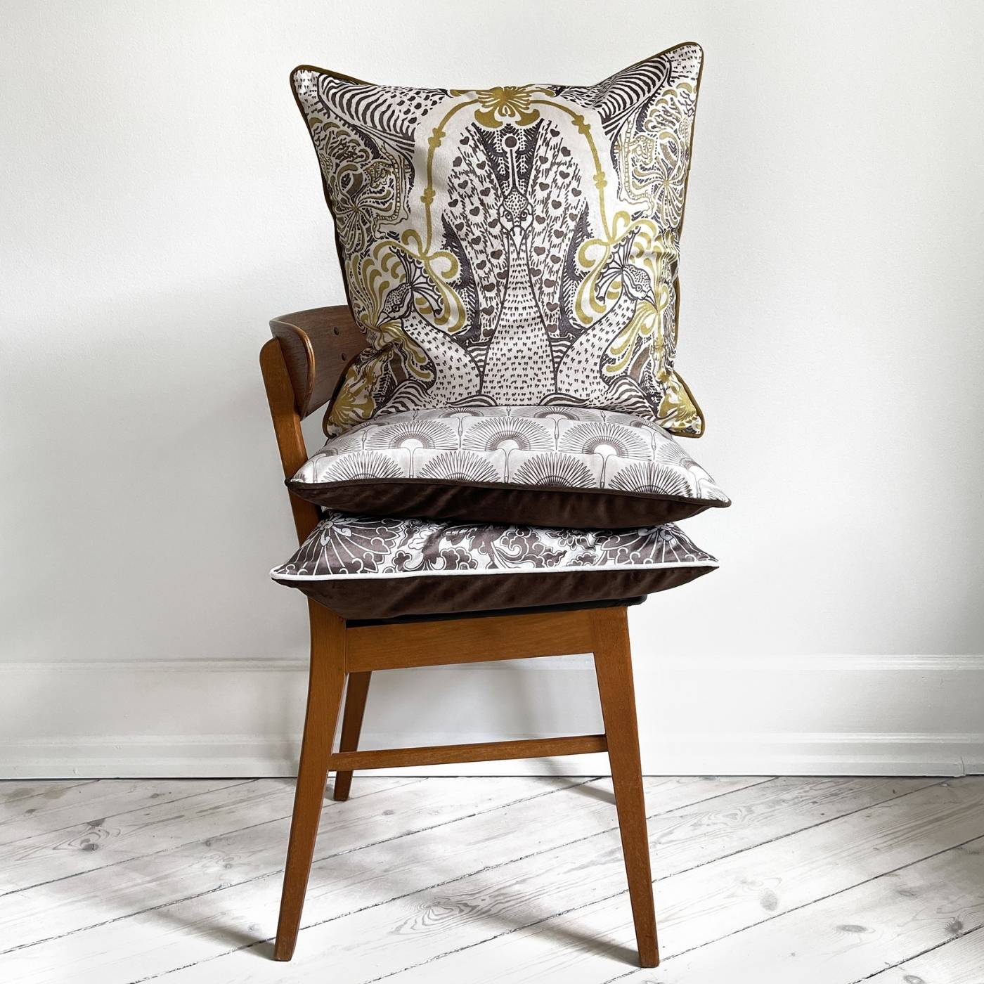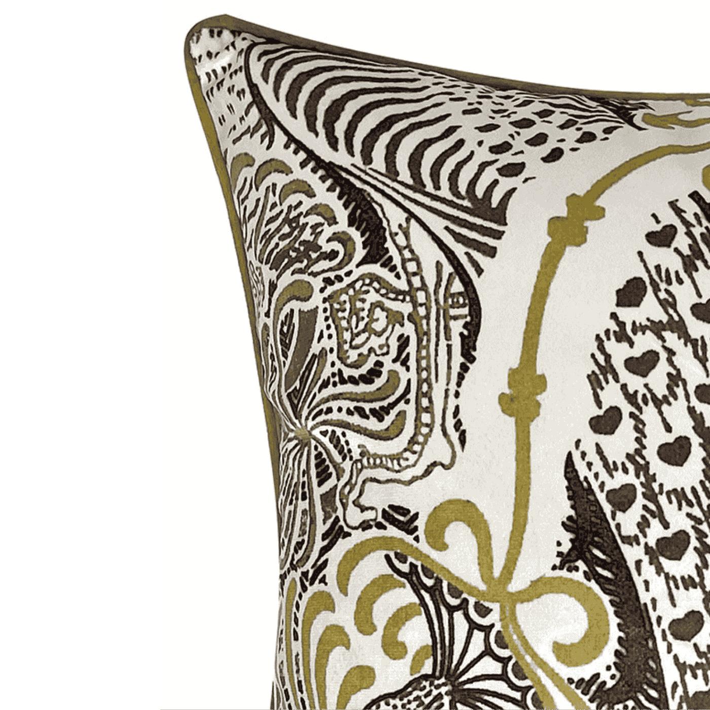 Cuscino decorativo 50×50 “Peacock” in velluto con stampa pavone. Retro in tinta brown/green e bordura a contrasto. Morbido e decorativo, perfetto per arricchire con eleganza divani e letti.