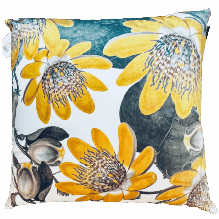 Cuscino in velluto 50×50 “Golden Glow” con stampa floreale su fondo chiaro e retro in velluto avorio. Morbido, luminoso e raffinato. Ideale per ambienti armoniosi e spazi rilassanti.